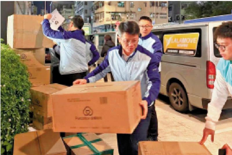 圖:交通銀行在港機構義工隊,為大埔宏福苑受災市民送上急需物資。