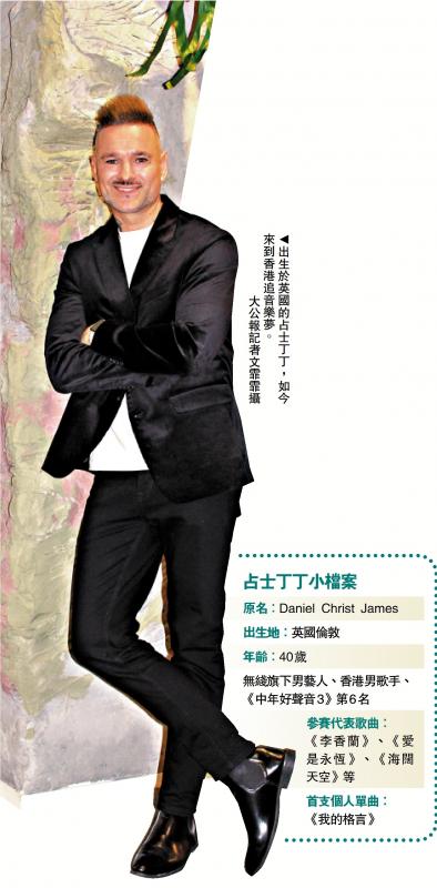 在英國出生的占士丁丁(Dan James)因為參加《中年好聲音3》而獲香港觀眾認識。一個原本不懂中文的外國人,選擇離鄉別井留在香港追夢,全因對音樂的熱愛,亦因為香港人讓丁丁感受到滿滿的愛及接納。最近丁丁推出第一首屬於自己的廣東歌《我的格言》,他形容這首歌是寫給香港人的「情書」。\大公報記者 文霏霏