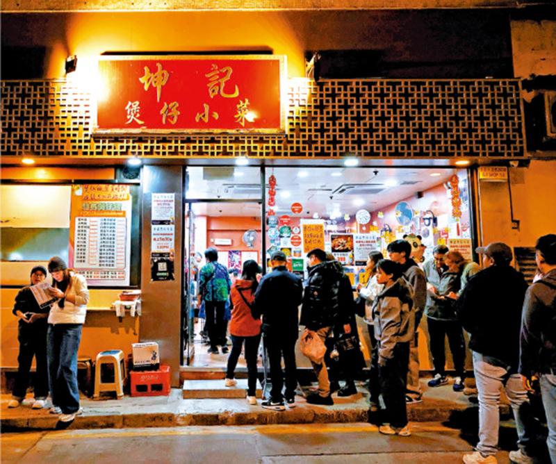 在港島,也有店舖在堅守這份街角煲仔飯的日常。西營盤的「坤記煲仔小菜」下午5:30開門,半小時內,街角已聚集食客,只為一鍋帶着鑊氣、飯香和微焦飯底的煲仔飯。價格稍高,一份約百港元,但人氣依舊不減。
