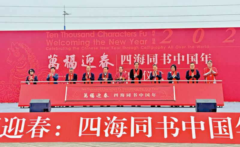 活動現場滿掛着紅彤彤的揮春,營造出喜慶祥和的節日氛圍。剛勁南獅與靈動舞龍碰撞着鏗鏘鼓點,婉轉唱腔與嶺南器樂融合着韻律說唱,一段極具嶺南文化特色的演出之後,中國書法家協會主席孫曉雲領銜開筆,書寫「福」字。參與活動的海內外書法家隨後一齊動筆,為現場的各行業代表及市民大眾寫揮春並送祝福。當天適逢大寒節氣,寒冷的天氣也阻擋不住大家的熱情,活動吸引了大量市民趕來,他們圍着欣賞書法名家行筆弄墨,領取「福」字與揮春的人群排成了長龍。