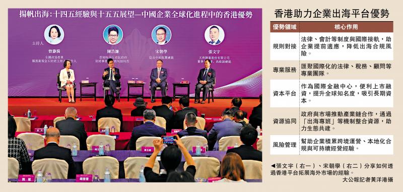 在地緣政治不確定性上升、全球經濟波動加劇的背景下,企業如何借力香港平台,在跨境投資合規治理、品牌出海與供應鏈協同中部署全球戰略,成為昨日第十五屆香港國際金融論壇暨中國證券「金紫荊獎」頒獎典禮中,「揚帆出海:十四五經驗與十五五展望──中國企業全球化進程中的香港優勢」圓桌論壇上的討論熱點。\大公報記者 李樂兒