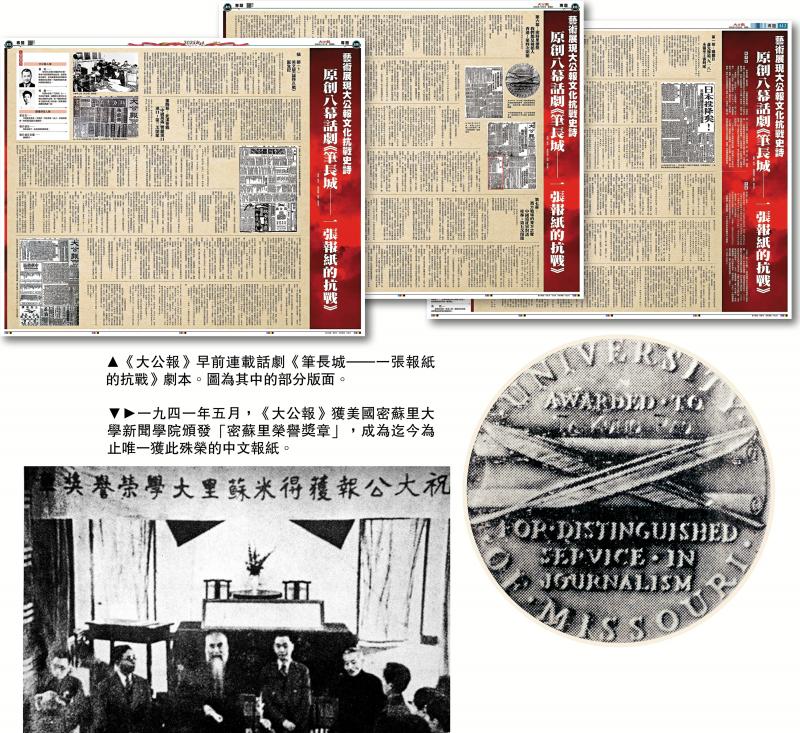 這部戲以一九三一至一九四五年《大公報》六度遷徙辦報所在地為原點,輻射出從日本製造「九一八」事變拉開戰爭序幕、到以反法西斯同盟和世界人民的勝利告終的十四年間,中國報人「言救國、筆做槍」的文化抗戰之宏大視野。\李小青