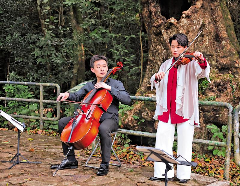《客家音聊&港茶》中,105歲村民黃強英與青年演奏家劉雯雯及張夢一起用嗩吶、笙、塤等樂器展開跨世代對話。老人的歌聲悠遠,青年音樂家的即興編排則化為老人歌聲的伴奏。譚盾說:「黃強英唱的山歌像樹根,我們的音樂就像從裏面長出的新芽。」張夢表示,這些古老歌謠不僅震撼她,也為創作帶來靈感:「手中的樂器只是媒介,老人的音樂像古畫般有力量。」