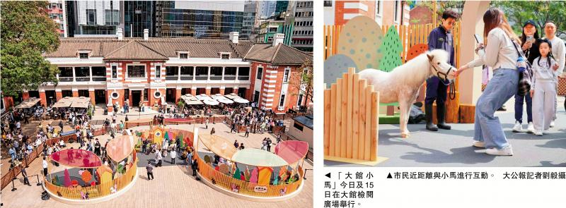 作為今年的生肖吉祥物,馬兒可謂是人見人愛。馬會馬年系列活動之一「大館小馬」今日及15日在大館檢閱廣場舉行,將活生生的馬拉進中環鬧市區,通過動物互動體驗活動,拉進公眾與馬匹之間的距離。活動於昨日正式拉開序幕,吸引不少市民到場,拍下一張張與可愛小馬駒的合影。\大公報記者 劉 毅