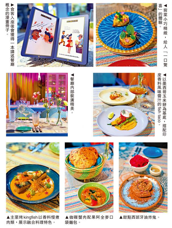 餐廳的靈感來源本身就充滿浪漫色彩:來自墨西哥的瑪利亞小姐與來自印度的辛格先生之間熱烈而真摯的愛情故事。這樣的設定不僅賦予餐廳鮮明的敘事性,也為料理創作提供了豐富的想像空間。兩個看似遙遠的飲食文化,在這裏被巧妙結合,既保留各自特色,又達到出乎意料的和諧。墨西哥料理以色彩鮮艷、風味奔放著稱,而印度料理則在香料運用上極為精妙、層次複雜。兩者雖同樣偏重口味,但呈現方式截然不同,而在這家餐廳中,卻能相互補充,碰撞出新的火花。