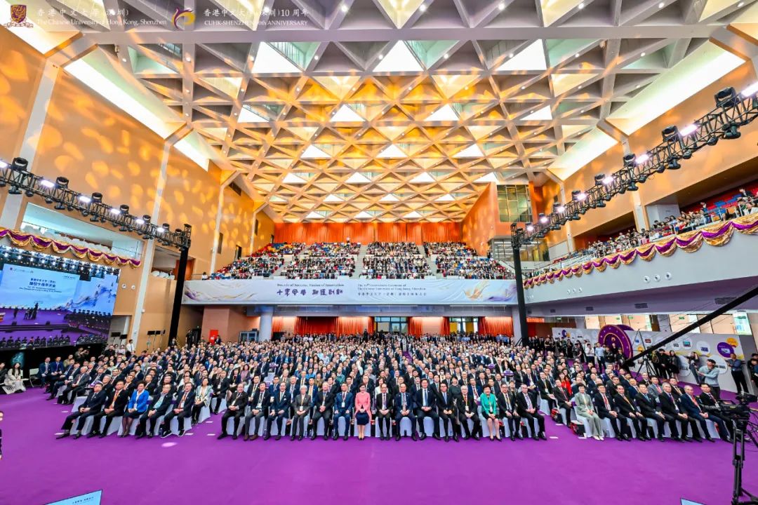 中國科學技術協會名譽主席韓啟德院士、深圳市委副書記、市長覃偉中先生,香港中文大學(深圳)理事長、香港中文大學校長段崇智教授、香港中文大學原校長劉遵義教授出席大會並講話,香港特別行政區行政長官李家超先生通過視頻祝福大學,香港中文大學(深圳)校長徐揚生教授作題為《十年風華,融匯創新》的致辭。香港特別行政區第五任行政長官林鄭月娥女士,中國科學院原院長白春禮院士,中國銀行業監督管理委員會原主席劉明康教授,香港中文大學(深圳)校長講座教授、前海國際事務研究院院長鄭永年,中國工程院副院長吳曼青院士,深圳市原副市長唐傑先生,深圳大學校長毛軍發院士,香港中文大學(深圳)校長學勤講座教授唐叔賢院士出席大會並在紀念《粵港澳大灣區發展規劃綱要》頒布五周年暨發展論壇中發言。