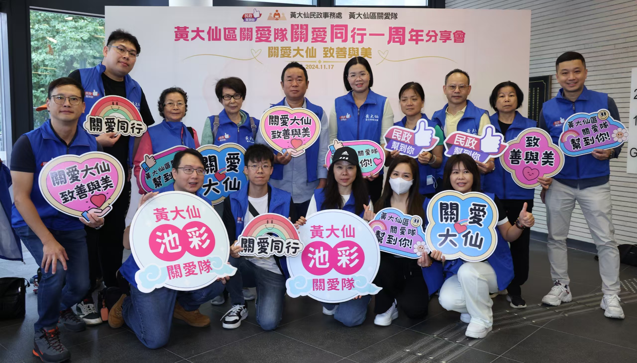 黃大仙區關愛隊已成立一年。由黃大仙民政事務處及黃大仙區關愛隊合辦「黃大仙區關愛隊關愛同行一周年分享會」,於2024年11月17日星期日舉行,310位黃大仙區各關愛隊成員及義工出席。
