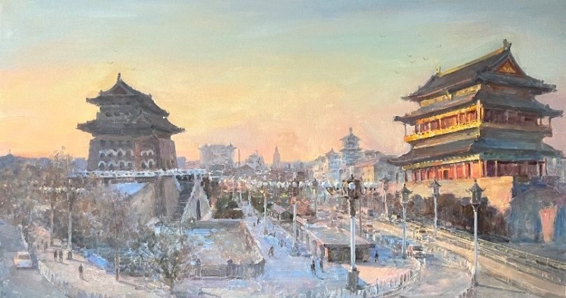 《夕照正陽門》70x130CM布面油畫 2024