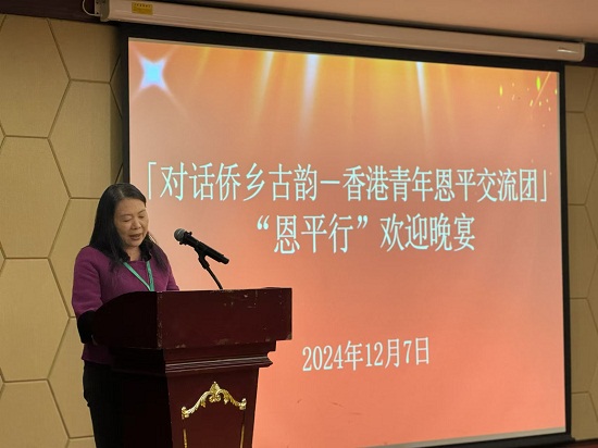 交流團團長、僑港恩平同鄉會理事長吳小菊在歡迎晚宴時表示,僑港恩平同鄉會作為一個百年社團,將會積極配合在特區政府及家鄉政府之間發揮好橋樑作用,讓香港青年了解祖國文化的博大精深,促進兩地青年之間的相互了解、增進友誼和溝通合作,相信本次青年交流團只是起點,日後將會多組織香港青年到恩平交流、就業以及創業,全力協助家鄉政府寫好「僑」文章。