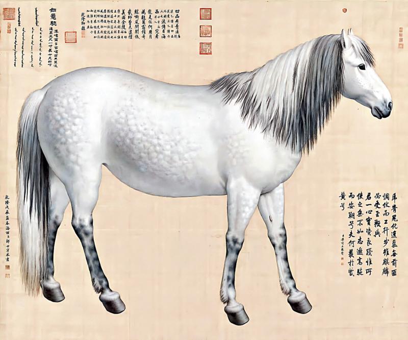 十八世紀,意大利傳教士郎世寧在清宮繪畫中展現了其精湛的技藝。他以生動活潑的駿馬形象,跨越文化界限,樹立了一座跨文化里程碑。這不僅是一位西洋畫師在東方的技藝展演,更是一場充滿智慧的文化交融與視覺對話。當陽光漫過紫禁城的琉璃瓦頂,這位來自米蘭的耶穌會士正以中國毛筆蘸取西洋彩墨,開啟了一段長達半世紀的繪畫傳奇。