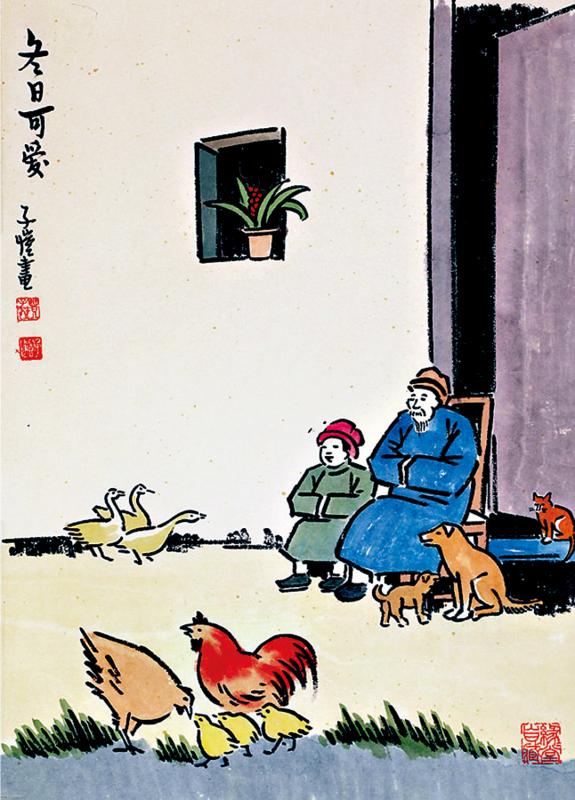 初冬,我去看了豐子愷的展,最喜歡《冬日可愛》這幅畫。畫中爺孫倆並排而坐,穿長襖、戴帽子,手揣在衣袖裏,沐浴着陽光,漾着淺淺笑意。我想起鄉下爺爺奶奶的老屋,門外擺着幾把竹椅。記憶裏已沒有寒風,只有屋外暖陽。爺爺戴着老花鏡看報紙,奶奶坐在一旁織毛衣。