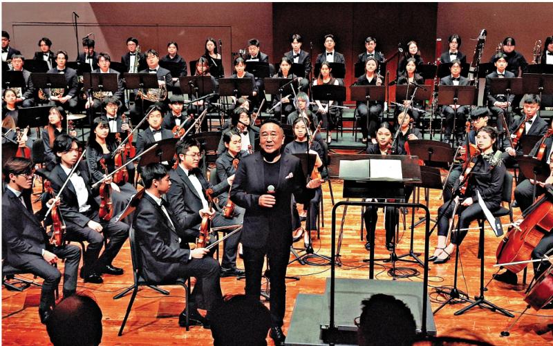 二月六日晚,這隊香港演藝學院音樂學院集各樂器聲部的精英樂團,以近九十人之眾,盛裝端坐在本校「區永熙音樂廳」,靜待現職香港中文大學(深圳)音樂學院的資深指揮胡詠言的領奏。