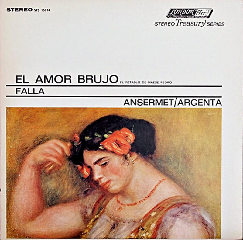今天是深受藝術愛好者喜愛的十九世紀印象派繪畫大師奧古斯特·雷諾阿誕辰一百八十五周年。身為印象派畫家中最擅長描繪甜美少女的藝術家,雷諾阿往往能將少女的天真爛漫和無邪捕捉得恰到好處。適逢大師冥壽,本周應景地推薦一張以雷諾阿筆下少女為封套的唱片。這張黑膠唱片是DECCA唱片公司於一九六七年灌錄並發行,瑞士指揮家恩內斯特·安塞美執棒他所創立的瑞士羅曼德管弦樂團,攜手西班牙女中音瑪琳娜·德·加巴蓮聯袂演繹和雷諾阿活躍於同時代的西班牙作曲家曼努埃爾·德·法雅的芭蕾舞劇《魔法師之戀》。唱片封套選擇了雷諾阿一幅帶有異域風情的《持手鼓的舞女》。