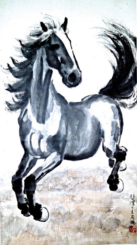 當歷史浪潮奔湧至工業革命的拐點,蒸汽機的轟鳴終於漸次掩蓋了清脆的馬蹄之聲。馬在傳統的交通、軍事、農耕中的主導地位不可逆轉地式微,淡出了實用的台前。然而,其文明印記並未就此湮沒,駿馬的形象從沙場悍將悄然轉型為文化與心靈的使者。其忠誠、勇毅、耐勞的品性,更與儒家推崇的君子之德相契合,成為人格砥礪的鏡像坐標。在中國文化的譜系中,馬被賦予了乾象、陽畜的哲學意涵,象徵着天行健的剛健精神與君子自強不息的韌性品格。伯樂相馬的典故,早已超越畜牧學,成為對識才之智與用才之道的永恆隱喻。韓愈「世有伯樂,然後有千里馬」的喟嘆,道盡了人才與機遇的千古命題。杜甫詠馬「竹批雙耳峻,風入四蹄輕」,讚譽的是其俊逸神采與不凡氣骨;徐悲鴻筆下奔放的駿馬,更是民族危亡之際奮起精神的激昂寫照。在西方,希臘神話中那匹長有雙翼的佩伽索斯馬是靈感與詩性的化身;中世紀騎士文學中,馬同樣也是忠誠、榮譽與高貴情操的夥伴。此等文化建構,使馬從役畜一躍而蛻變為蘊藉深厚的文化靈獸,在各個族群的集體心理中刻下深深烙印。馬,已然成為一種跨越文明的精神符碼,凝結着人類對力量、自由、忠誠與超越的共同想像,尤其像「馬到成功」「龍馬精神」等成語的鮮活運用,愈益昭示着馬文化奔騰不息、勇往直前的精神內核,依然在激勵着現代人奮發前行。