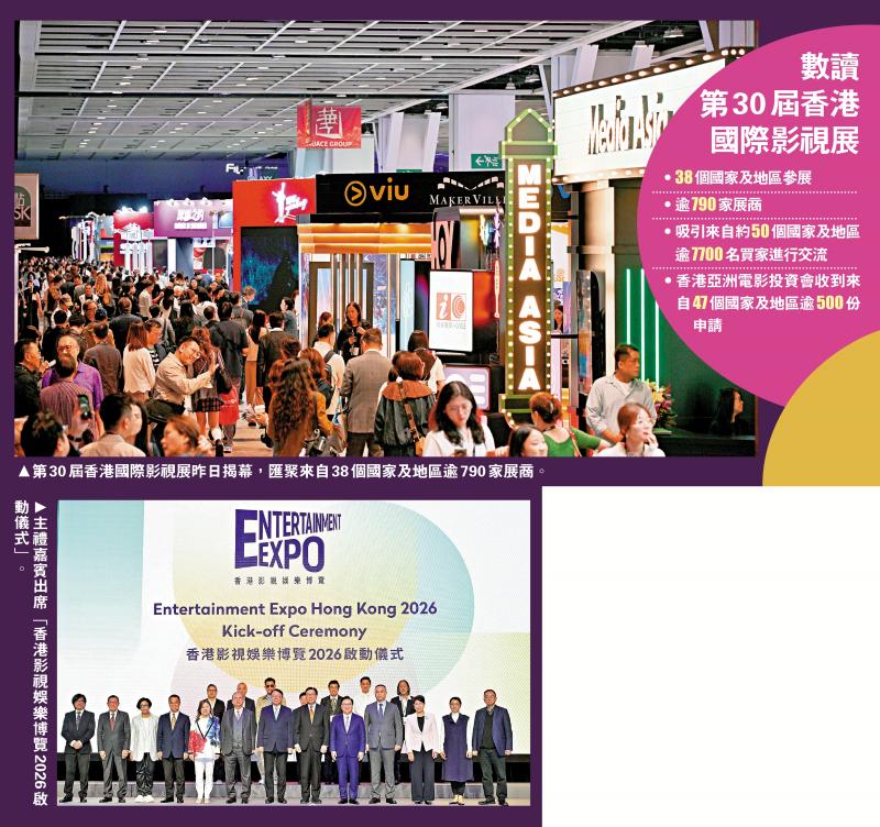 一年一度的香港影視娛樂博覽正在舉行。今屆博覽以「連繫無限可能」為主題,涵蓋電影、電視、音樂及數碼娛樂不同範疇的活動,包括展覽、電影節、頒獎禮、論壇及投資會。博覽今年同時慶祝香港國際影視展30周年及香港國際電影節50周年兩大里程碑。作為博覽重要活動之一的第30屆香港國際影視展(FILMART)及亞洲影視娛樂論壇,由3月17日起至4月20日同場舉行,AI微短劇等熱點備受關注。此外,今屆FILMART將首度舉辦「AI學院,AI影坊」專題工作坊。/大公報記者 郭悅盈