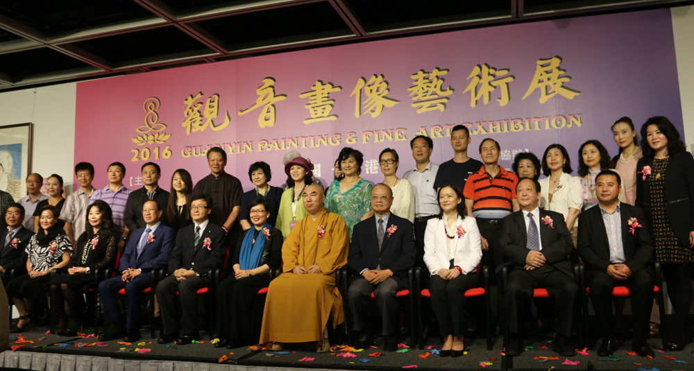 圖:眾嘉賓及畫家出席「2016觀音畫像藝術展」開幕式\大公報實習記者許越攝