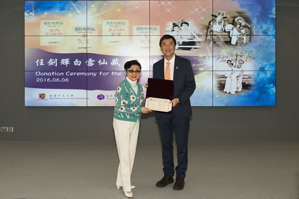 【大公報訊】香港中文大學日前在大學圖書館舉行「任劍輝白雪仙藏品」捐贈儀式,以感謝白雪仙和任白慈善基金的慷慨捐贈。儀式的主禮嘉賓包括任白慈善基金主席白雪仙及副主席陳培偉、中大校長沈祖堯、中大圖書館高級助理館長林美珍,其他嘉賓包括陳寶珠以及梅雪詩等等。