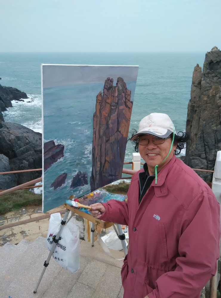 圖:畫家去年在平潭島寫生\林鳴崗供圖