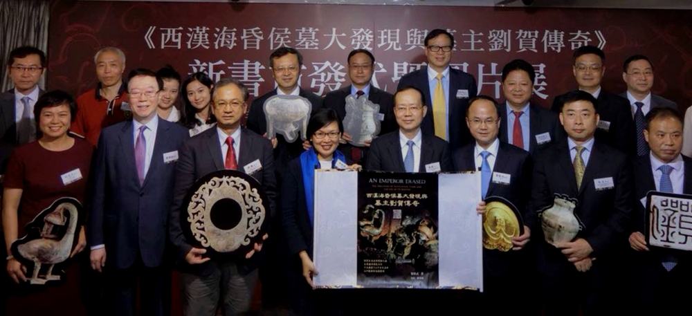 【大公報訊】記者劉毅、實習記者王姍姍報道:由聯合出版集團、江西省文化廳、中國文化院聯合主辦的《西漢海昏侯墓大發現與墓主劉賀傳奇》(簡體版書名《千古悲催帝王侯─海昏侯劉賀的前世今生》)新書首發式暨圖片展昨日在中商大廈舉行。中聯辦副主任楊健、民政事務局副局長許曉暉、中聯辦宣文部部長朱文、該書作者黎隆武、中國文化院執行董事吳建芳、海昏侯墓發掘隊隊長楊軍等出席發布儀式。
