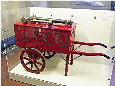 大館關閉後一個月我曾入內,見到總部大樓擺放了一輛古老的滅火手推車,這是早年隸屬警隊的滅火隊留下來的工具,現在很難想像此輛手推車所載的水量可足以救火。