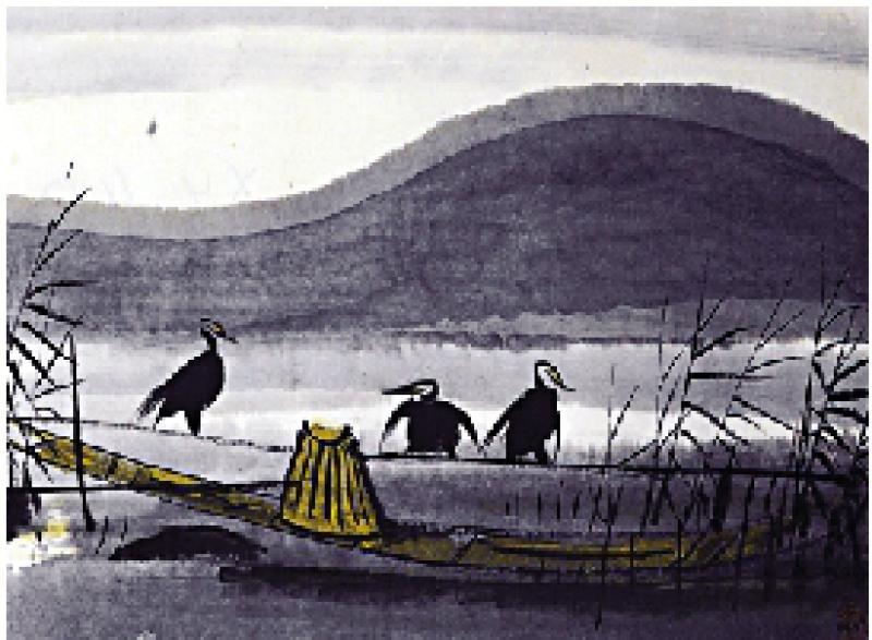 筆者童年在山林間長大,日常接觸大自然不少鳥類;退隱後居處前後也多大樹,可觀鳥為樂,深深體悟莊子「養鳥於林」的生活哲學;而且對歷來名家畫鳥佳作,不論水墨與敷彩,個人皆有偏愛。像附圖,乃林風眠以水墨繪畫《魚鷹蘆葦》,設色僅有幾抹灰黃色,襯出三隻烏黑魚鷹,筆法有點近宋代磁州窰的劃花,與疏幼蘆葦恰成對比;構圖簡拙,但境界幽邃靜穆。林風眠慣以素淨為主調,用色則傾向兩極;卻予人通體濕潤淡雅之感。正如詩人艾青一九七九年於北京,寫詩謂林風眠「對蘆葦有難解感情,從鷺鶩和蘆葦求得和諧」;「抖動翅膀的魚鷹」,「從小鳥找到兒童畫的天真」。