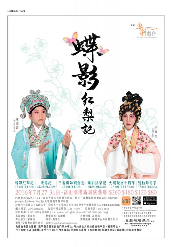 【大公報訊】「粵劇戲台」為推動香港粵劇發展,將於七月二十七至三十一日在高山劇場新翼演藝廳演出五套經典好戲,分別為《蝶影紅梨記》、《販馬記》、《三看御妹劉金定》、《火網梵宮十四年》及《雙仙拜月亭》。其中經典劇目《蝶影紅梨記》更會公演兩場,由首次合作的陳澤蕾及李沛妍,聯同梁煒康、黎耀威、瓊花女及司徒翠英等年輕演員,以全新形式詮釋經典,一新觀眾耳目。