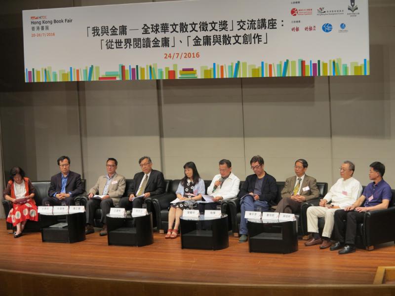 「我與金庸─全球華文散文徵文獎」交流講座由香港世界華文文藝研究學會、康樂及文化事務署與香港藝術發展局聯合主辦,香港作家聯會、《明報月刊》及《明報》合辦。