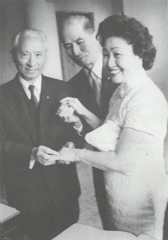圖:顧維鈞(左)為嚴幼韻戴上結婚戒指(《一百零九個春天 我的故事》插圖)