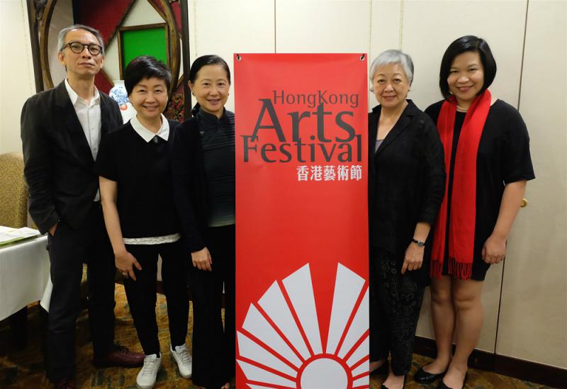 圖:左起:副節目總監蘇國雲、市場總監鄭尚榮、節目總監梁掌瑋、行政總監何嘉坤及發展總監余潔儀等多位藝術節組織團隊成員出席傳媒餐敘 大公報記者黃璇攝
