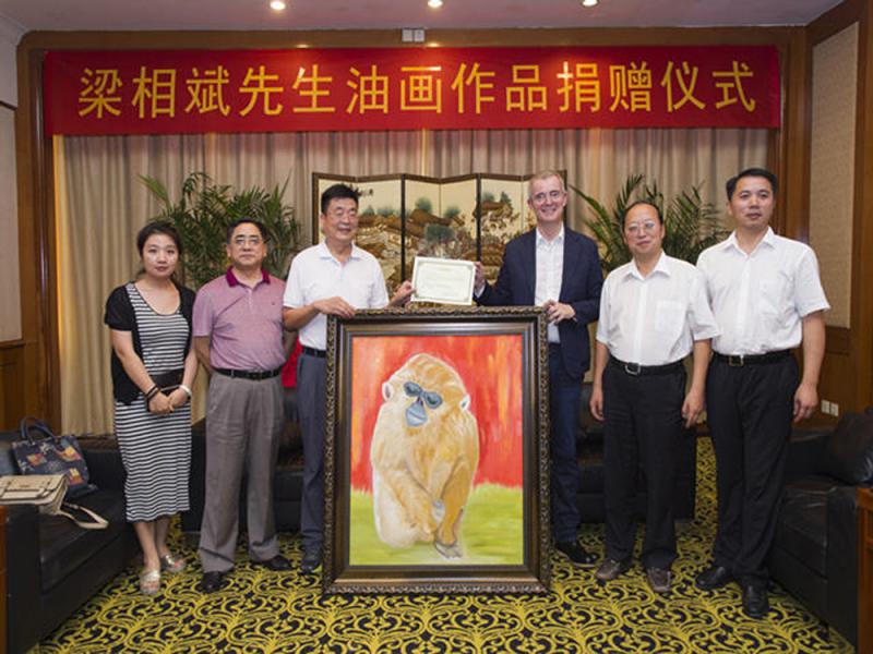 【大公報訊】新華社消息:油畫家梁相斌二十七日向法國駐武漢領事館贈送油畫作品《金猴遐想》。這是法國駐武漢領事館收藏的首幅由中國油畫家創作、具有鮮明中國特色的油畫,也是中法武漢生態示範城舉辦的首場中法油畫藝術交流活動。