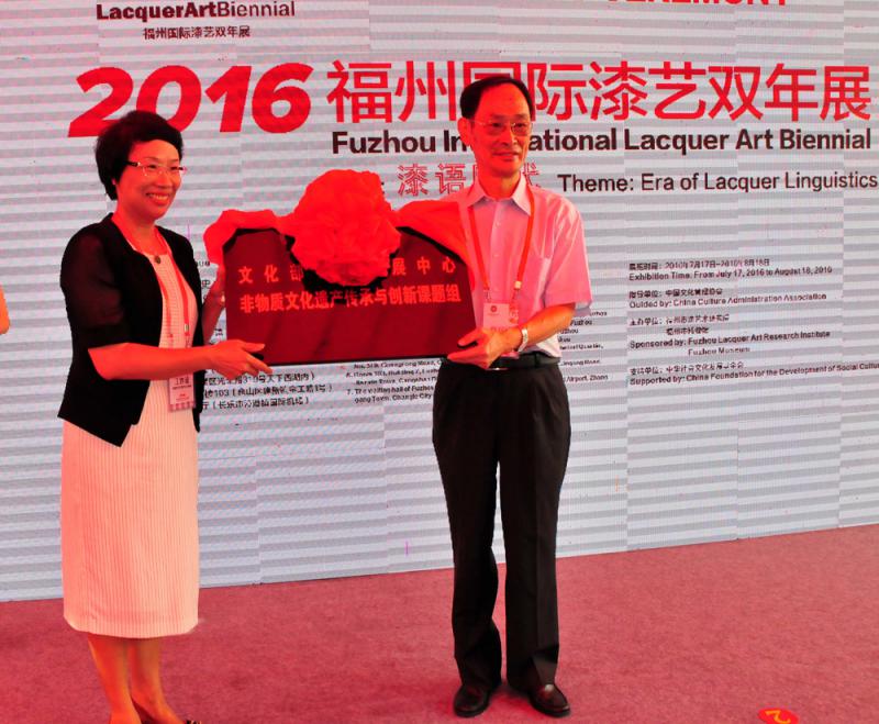 開幕式上還進行了「福州市漆藝術研究院」、「眾創空間」、「文化部藝術發展中心非物質文化遺產傳承與創新課題組」的授牌儀式。
