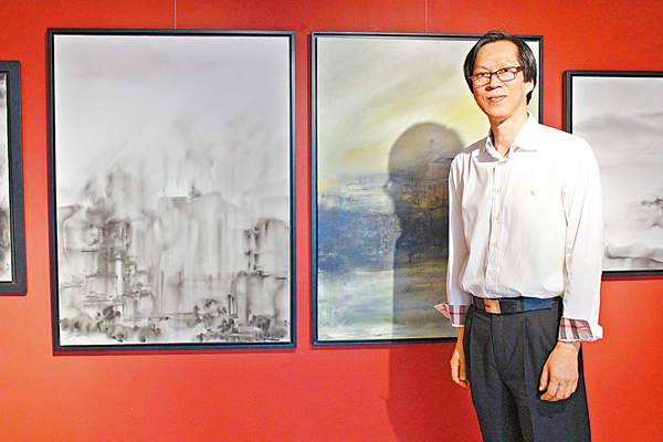 在港生活多年,熊海對這座城市的感情逐年遞增。慢慢地,熊海看香港,越看越有吸引力。首先被藝術家相中的是獅子山下的霧。霧起的時候,朦朦朧朧的,像是為色彩斑斕的耀眼夜景籠上了一層灰白色的面紗,彷彿美人遮面,別有一番風味。由於薄霧竟令現代化的都市生出中國水墨的意境,所以每逢三月尾四月初,霧雖還沒來,熊海卻已翹首以待,在畫室磨好了墨,備好了紙。「我多數情況下,會用清水描繪雲霧的輪廓,再用淡墨加上樓房建築,等到畫紙徹底變乾,最後線條勾邊。」這就是熊海所擅長「濕寫」技法,使用得當時,連絢爛的都市都能煥發出山水大寫意的風采。
