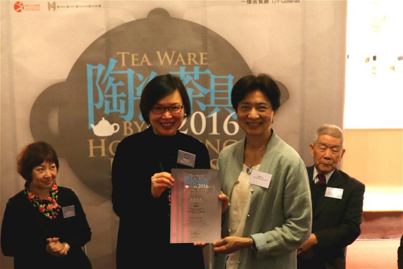 民政事務局副局長許曉暉,香港藝術館總館長譚美兒,以及「陶瓷茶具創作比賽2016」評審馮笑嫻、何大鈞、尹麗娟等為十一名得獎者分別頒發獎項。