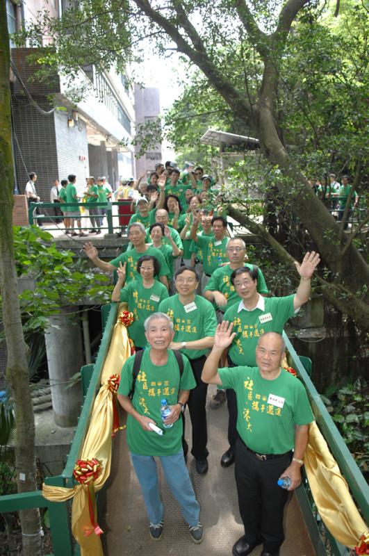 圖:二○○七年, 權叔(前排右一)推動的龍虎山行山徑正式啟動/資料圖片