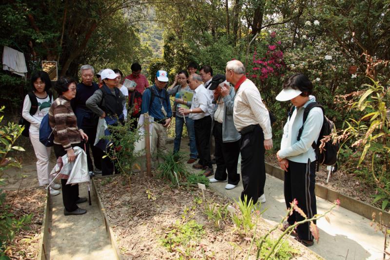 圖:權叔為行山愛好者介紹中草藥種植場/資料圖片