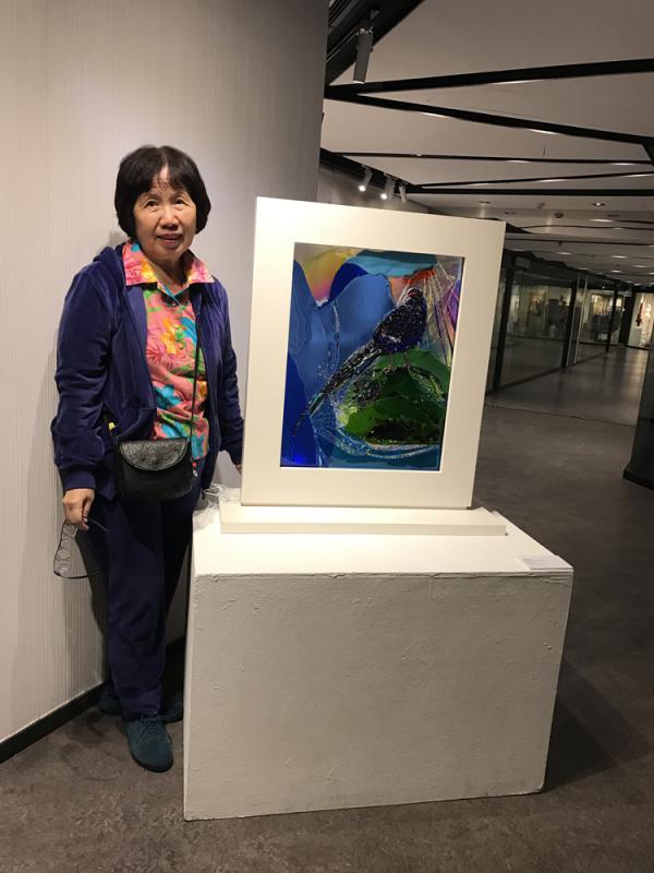 圖:台灣玻璃藝術家王美幸與其作品《台灣帝雉》/大公報記者梁舒婷攝