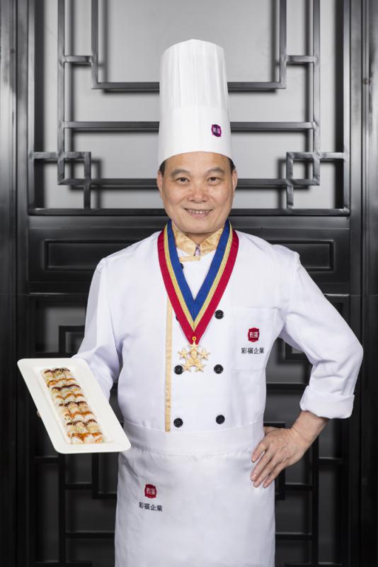 2016年,彩福獲得兩項至高榮譽金獎,其中點心組的「富貴蝦菌皇功夫腸」,以香滑的布拉腸粉包裹着酥脆香口的春卷皮,令人有一試難忘的口感,咀嚼時富貴蝦和雜菌餡料更帶有一種鮮而清新的味道。強哥介紹,做這道菜首先要將切絲的鮮冬菇和雞髀菇煎香,並加入上湯和自製雜菌醬,再加入富貴蝦、豆腐釀入春卷皮內炸至金黃色,再以布拉腸粉捲春卷。