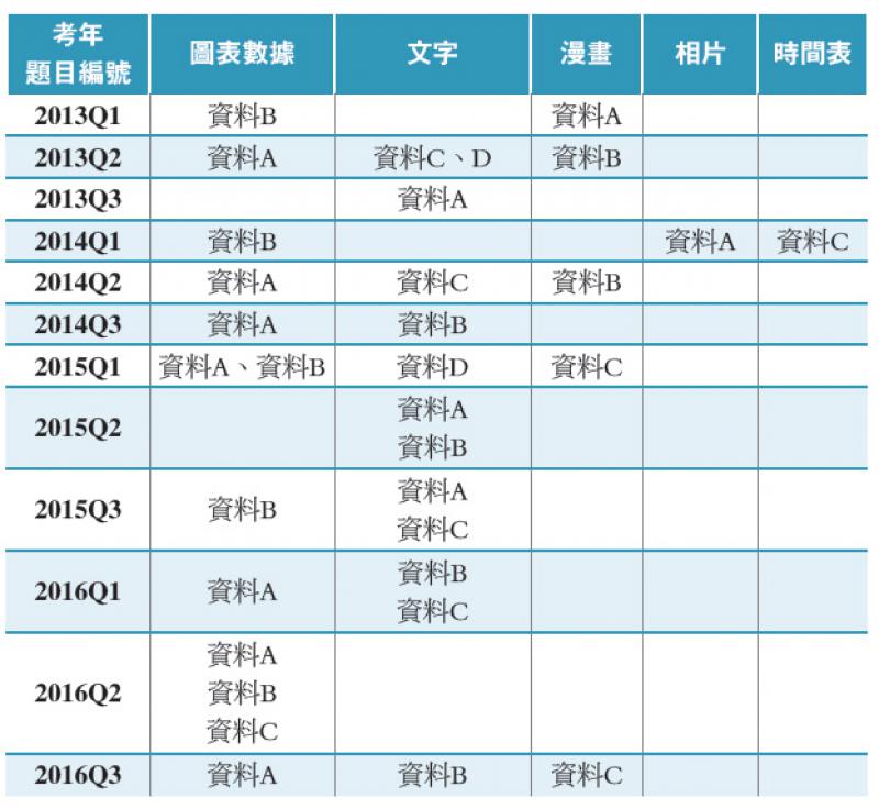 卷一試題資料類型方面,縱觀四年,考評所選取的資料,大多是圖表數據和文字為主。2016年的情況也是如此。因此,同學們準備通識考評時,宜多留意圖表數據和文字資料。不少同學對數據分析較為薄弱,宜多加練習。相比之外,相片已較少出現。若大家準備時間不足,可先集中溫習處理圖表數據資料技巧。