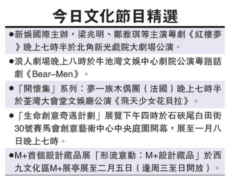 ●「生命創意奇遇計劃」展覽下午四時於石硤尾白田街30號賽馬會創意藝術中心中央庭園開幕,展至一月八日晚上七時。\&