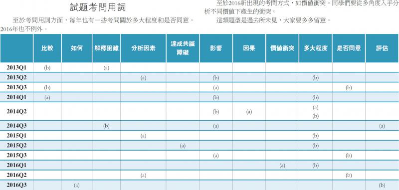 至於2016新出現的考問方式,如價值衝突。同學們要從多角度入手分析不同價值下產生的衝突。