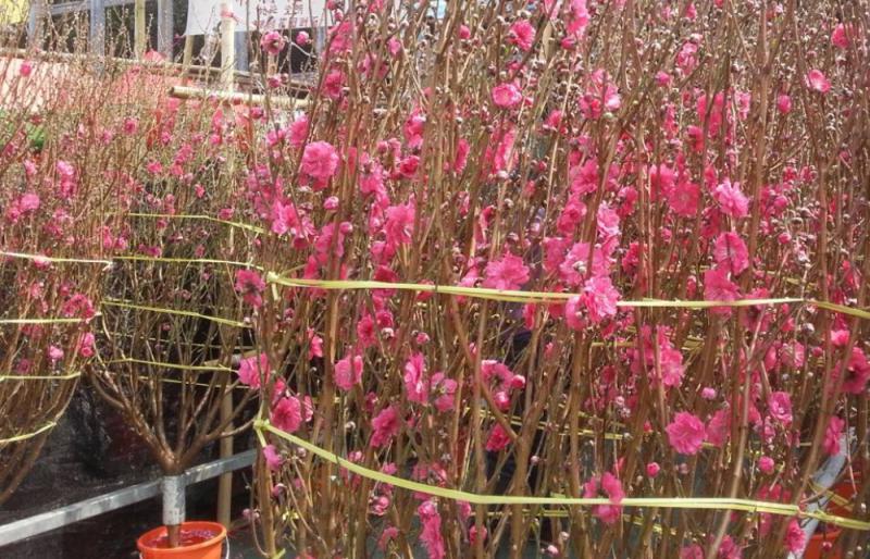 大酒樓、大型商場及酒店銀行,這時候多半都會派出買手開車到新界花地預購桃花。朋友在飲食集團工作,邀我同行,到大埔一處花地,見滿地都是一行行的菊花、劍蘭、百合、芍藥和丁香,另一邊則由幾排桃花。花農說,早前冷空氣持續幾天,恐凍壞花蕾,匆忙為年花禦寒,有些用膠紙包裹,或用大幅膠布覆蓋,通宵照明保暖,方使年花不受影響。友人細心挑選,看中四株挑花,高六七呎,付過定金,指定日期,日後送到集團的四家酒樓。「一樹桃花迎客來」,友人笑道,生意人喜歡桃紅滿枝頭,有精神,夠熱鬧,擺在大堂洋溢過年氣氛,客人紛紛與桃花拍照。