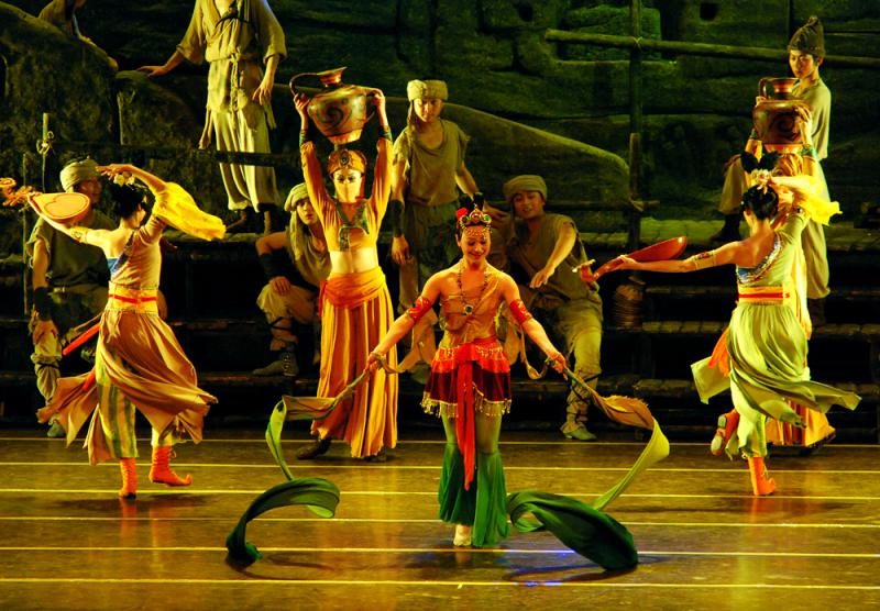此次演出,有七十名資深舞蹈演員,一千套精美服飾。舞台布景氣勢宏大,演員服裝精美絕倫,背景音樂古樸典雅,舞蹈編排獨具匠心。無論是演員的衣着打扮還是群舞,均體現出明顯的中國西部特徵。箏、塤、琵琶、簫管等中國傳統樂器加入到管弦樂中,進一步烘托出遼闊、雄渾、粗獷、蒼涼的主題音樂。男女主人公的獨舞與雙人舞或豪放、或纏綿,引人入勝。而敦煌壁畫的輝煌展現與全體演員的謝幕,成了整場演出的高潮。