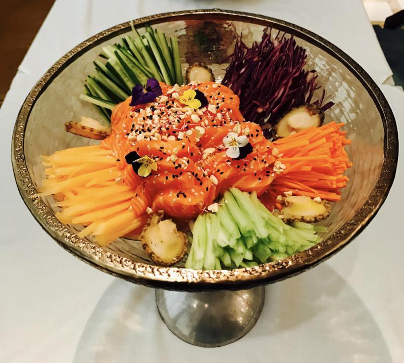如以多款不同新鮮食材配搭而成的「黃金鮑魚撈起」,擺盤賞心悅目,好像將春天的花園搬上了餐桌,不僅寓意興旺,「萬事亨通」,其中的真材實料更是讓人垂涎,大塊的挪威三文魚,彈牙沁涼的鮑魚,五彩繽紛的爽口蔬菜絲,最適合闔家「撈起」。