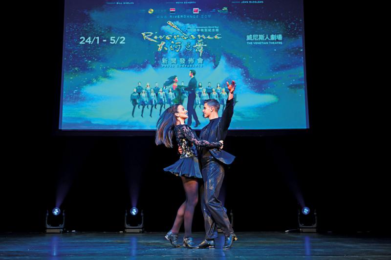 圖:《大河之舞——20周年特別紀念版》澳門發布會現場舞者即席演出/主辦方供圖