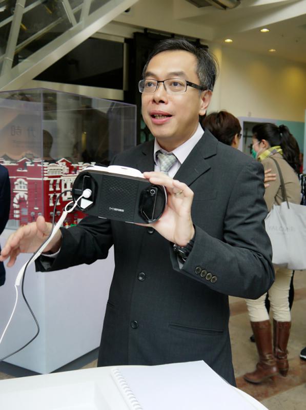 圖:古物古蹟辦事處一級助理館長(展覽及宣傳)伍德昌介紹展覽的VR互動/大公報記者湯艾加攝