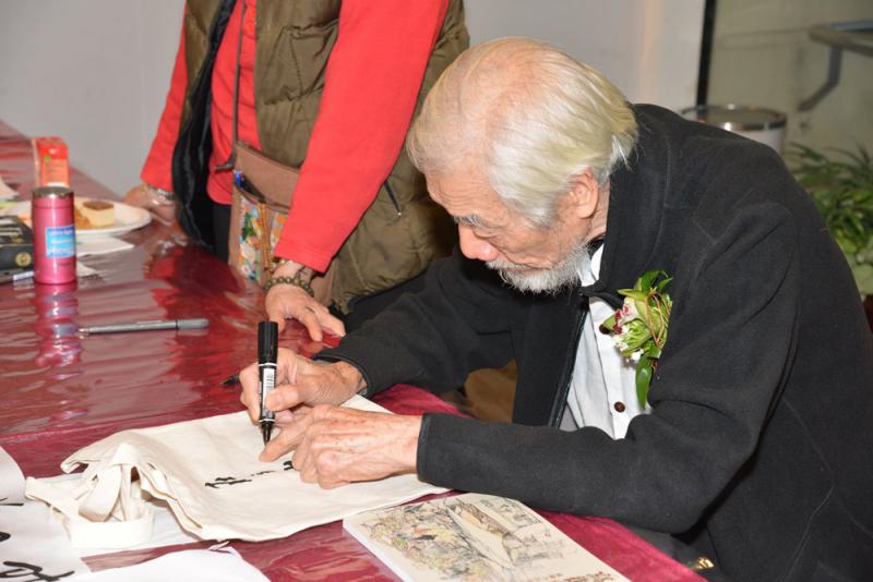 圖:歐陽乃沾親身出席畫展開幕禮,並為藝術愛好者簽名留念 /務本堂藝術發展會供圖