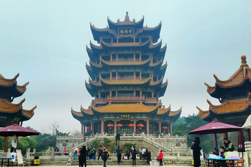 我於黃鶴樓,最早是從毛澤東致江青信中得知的,信中叫做「白雲黃鶴的地方」。比較幸運,算上這次,我已是第三次登臨黃鶴樓了。黃鶴樓位於長江南岸、武昌蛇山之上,江南三大名樓之一(其餘二者為岳陽樓和滕王閣),號稱「天下江山第一樓」。