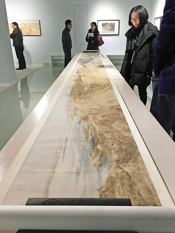 圖:觀眾參觀黨震《汶河早春圖》