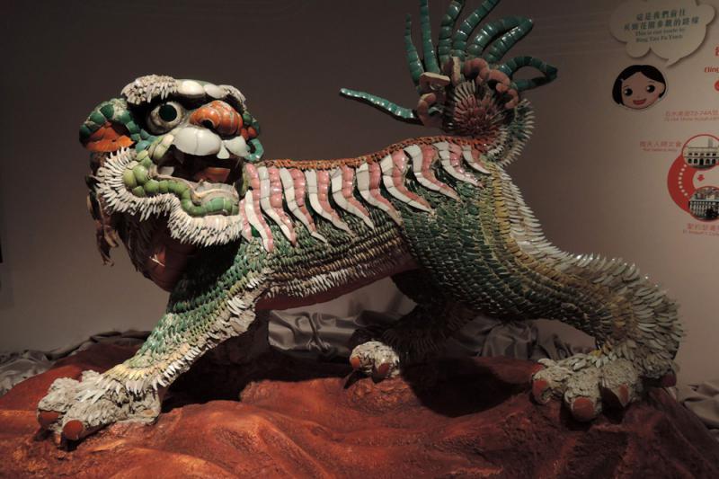 其他展品還有上水虎地坳文明廟的魁星踢斗像,我曾到訪這間兩進式清代廟宇,裏面殘破不堪,不見神像,雖被評為三級歷史建築,但上水廖氏似乎沒有打算將之修葺。另有一尊來自上環文武廟垂脊的石灣陶像,過去仰望屋脊的公仔,感覺細小,但其實原物頗大。展品也包括西式歷史建築的文物,如聖約翰座堂的主教座和桌子,及域多利監獄的門鎖和鎖匙等。