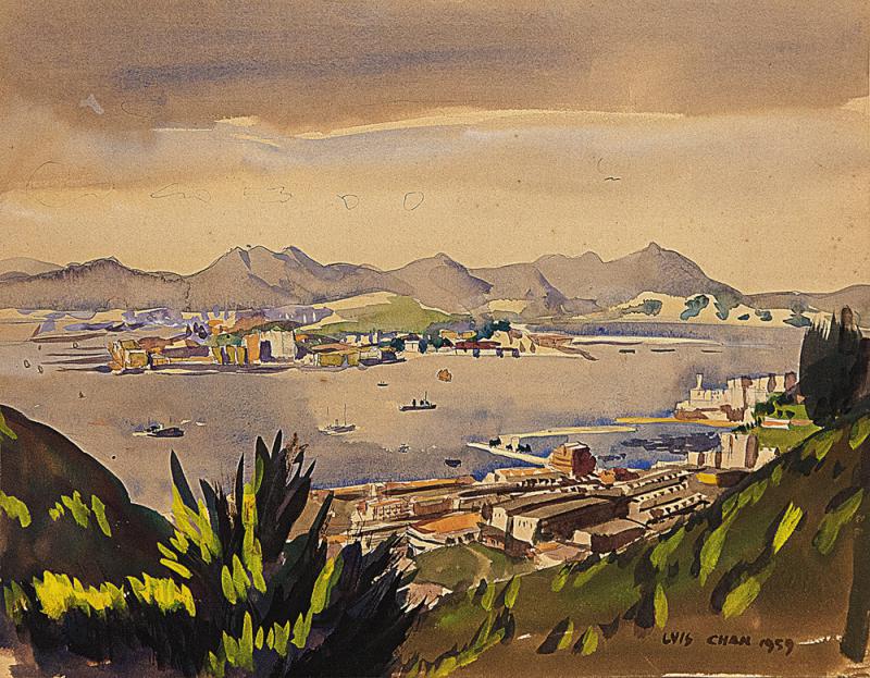 圖:水彩畫《無題(山頂眺望)》(一九五九年) 漢雅軒供圖
